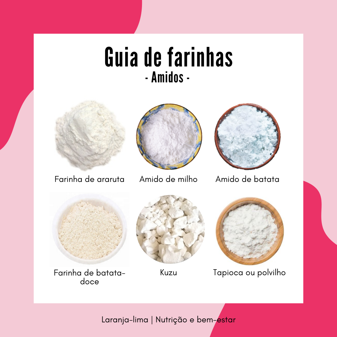 Por último, os amidos, que servem mais para tornar os bolos e pães mais leves e macios. Também atuam como espessantes e ajudam a ligar a massa.
